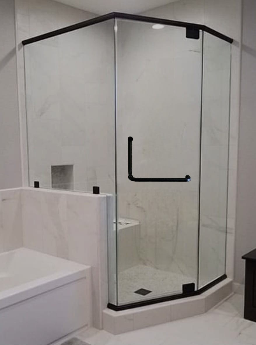 SHOWER DOOR PIVOT HINGE WITH TOWEL BAR AND HANDLE (HANDLES SOLD SEPARATELY)